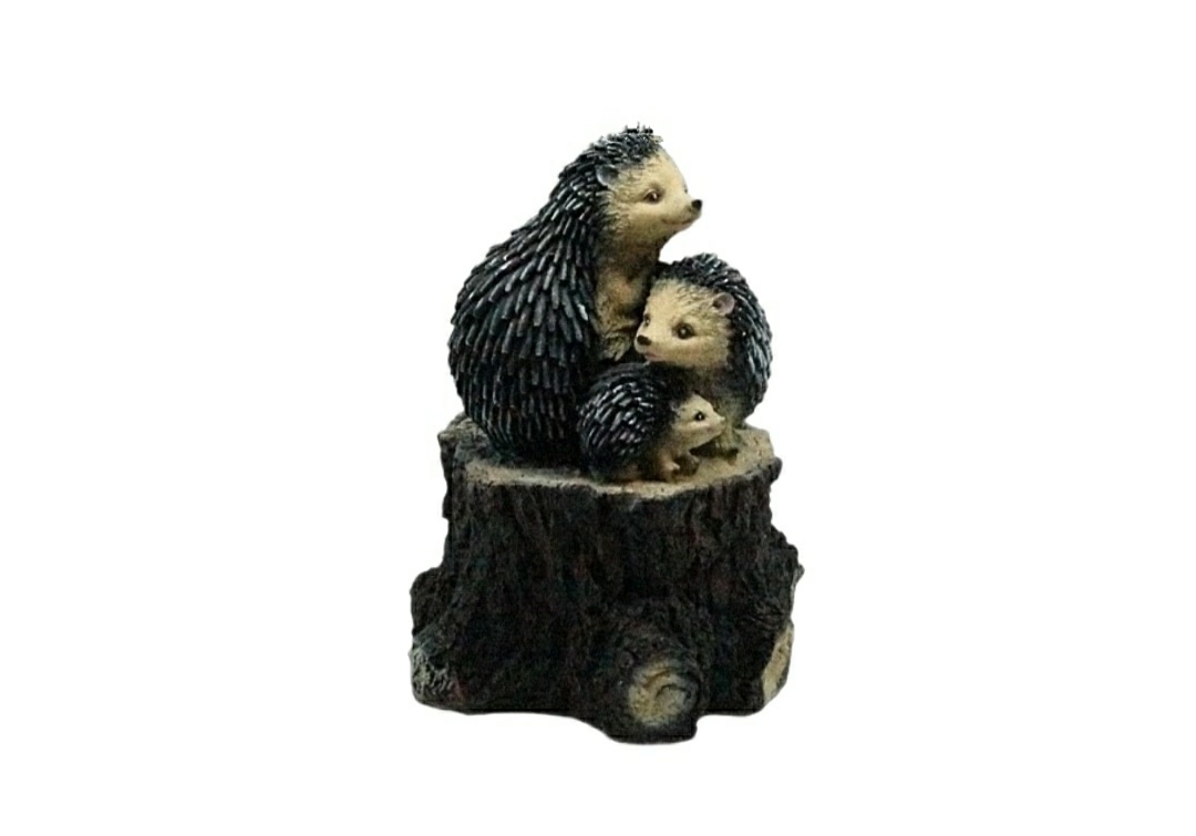 Садовая фигура Ежи семья на пне 45 х 28 см