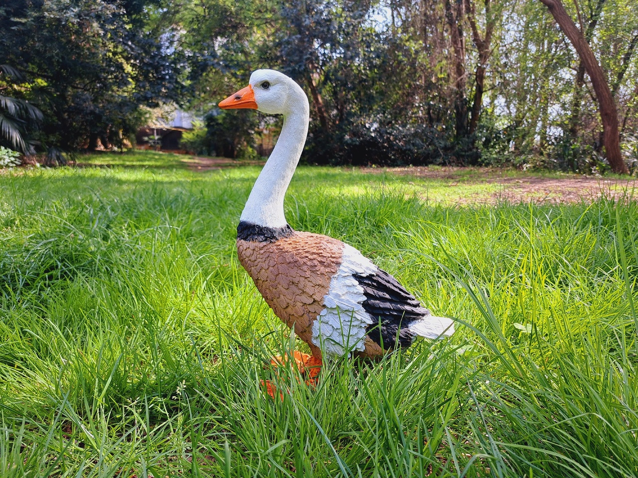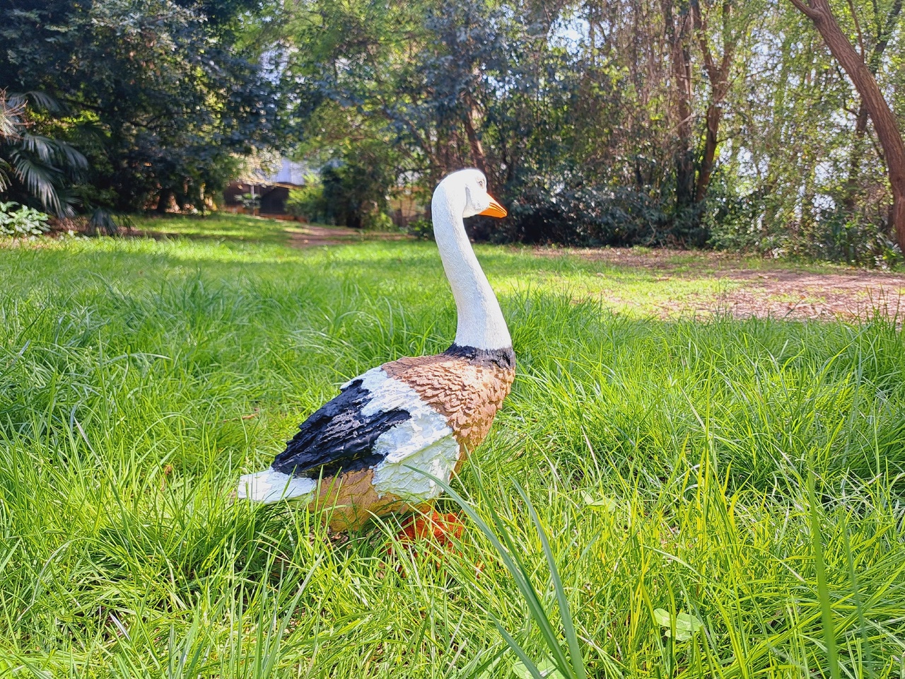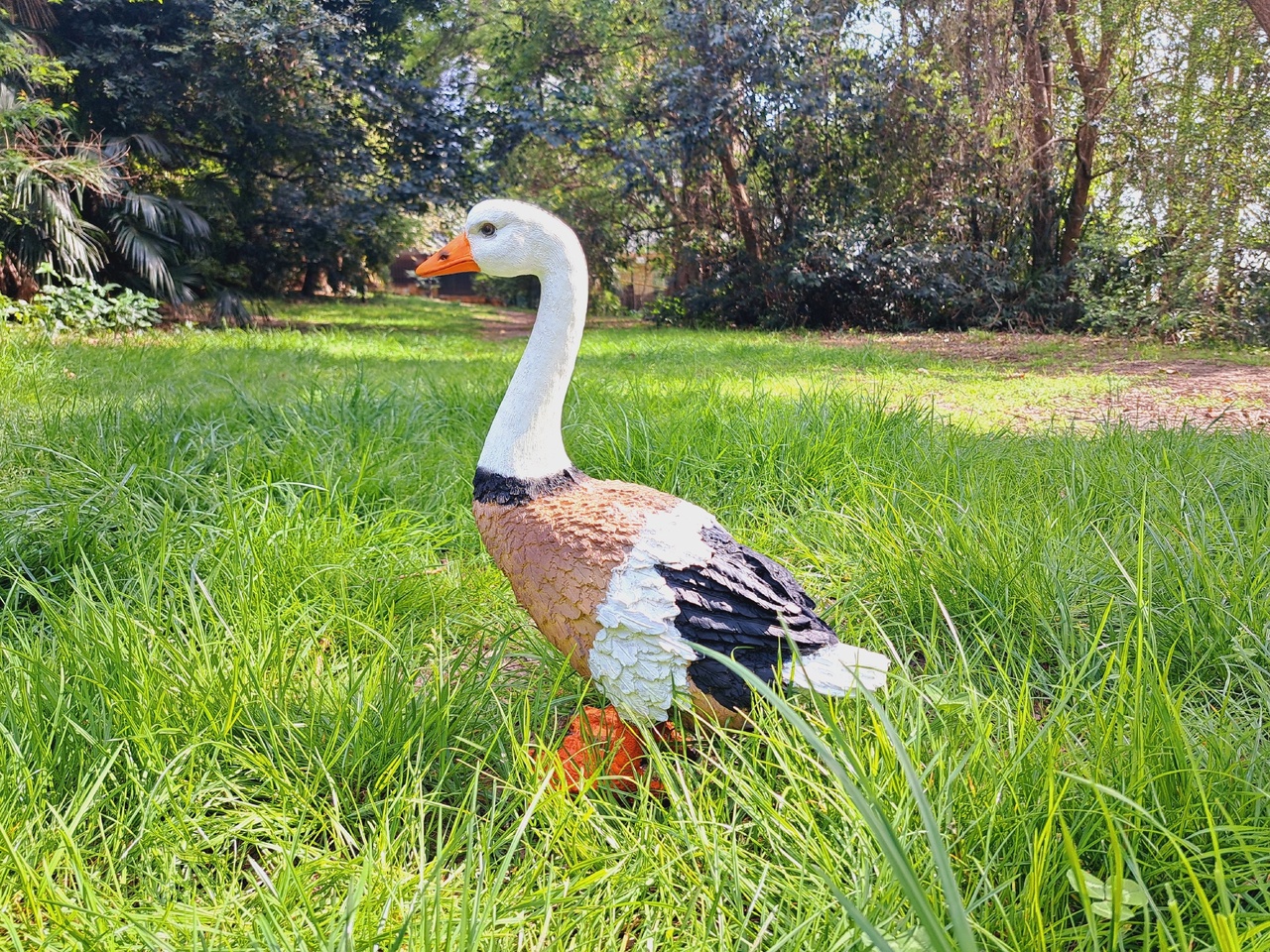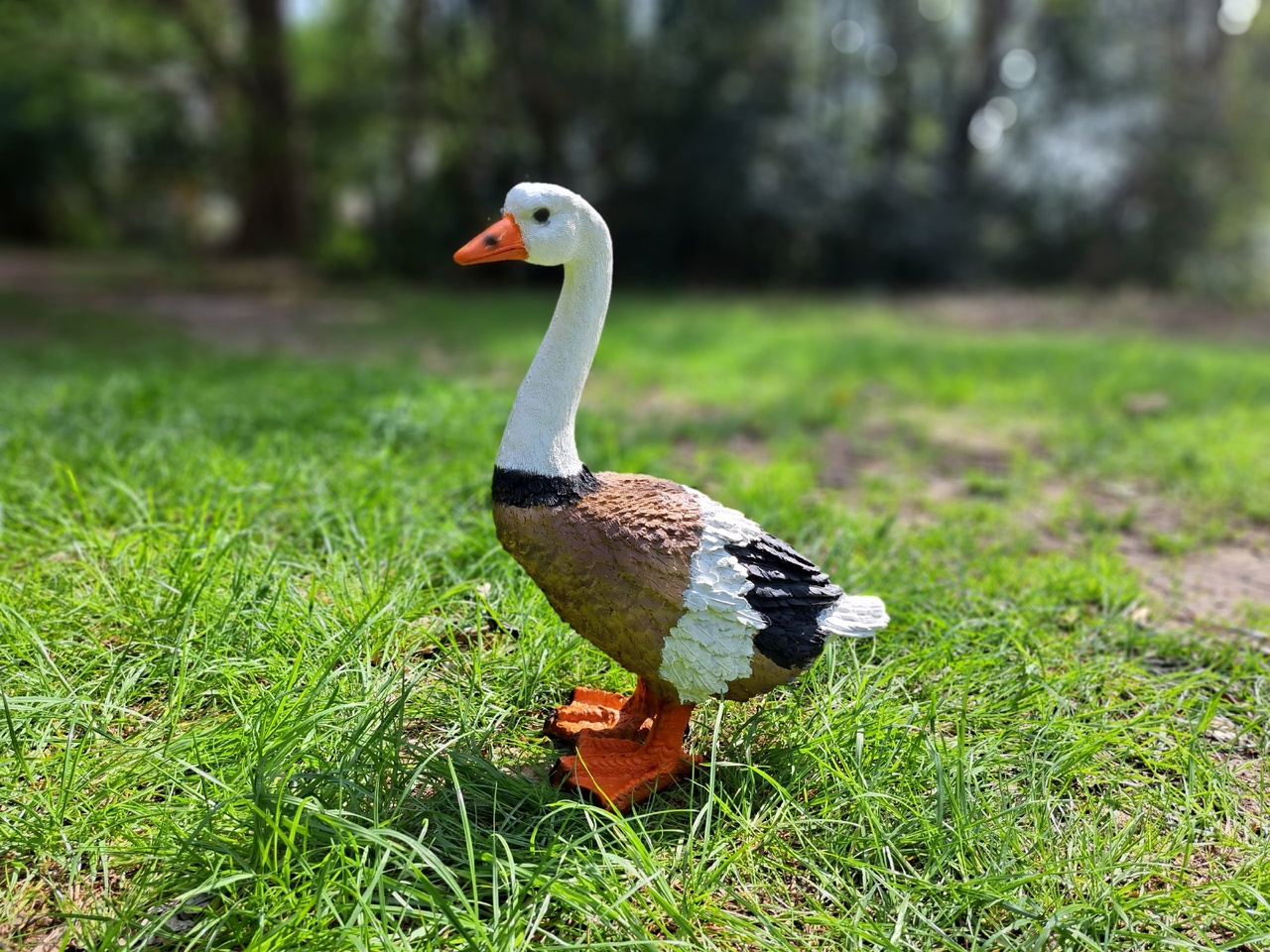 Гуси и утки олицетворяют хозяйственность и расторопность. Такой помощник на садовом участке станет символом порядка и предусмотрительности. Фигура птицы, расположенная в траве, придаст окружающему пространству живость и ощущение широты. Садовая фигура из полистоуна (искусственного камня) — оптимальное решение для уличных условий. Этот материал не выцветает на солнце, даже если находится под воздействием ультрафиолета круглый год