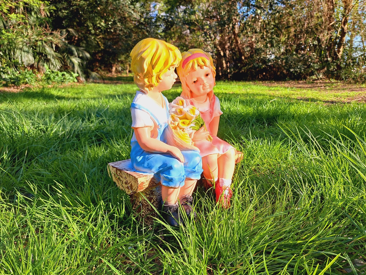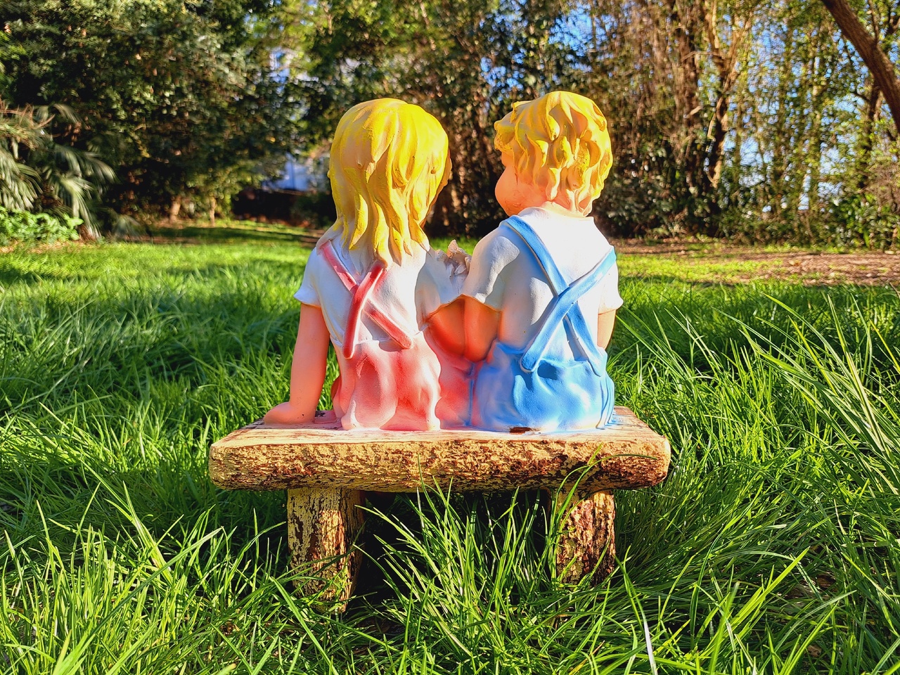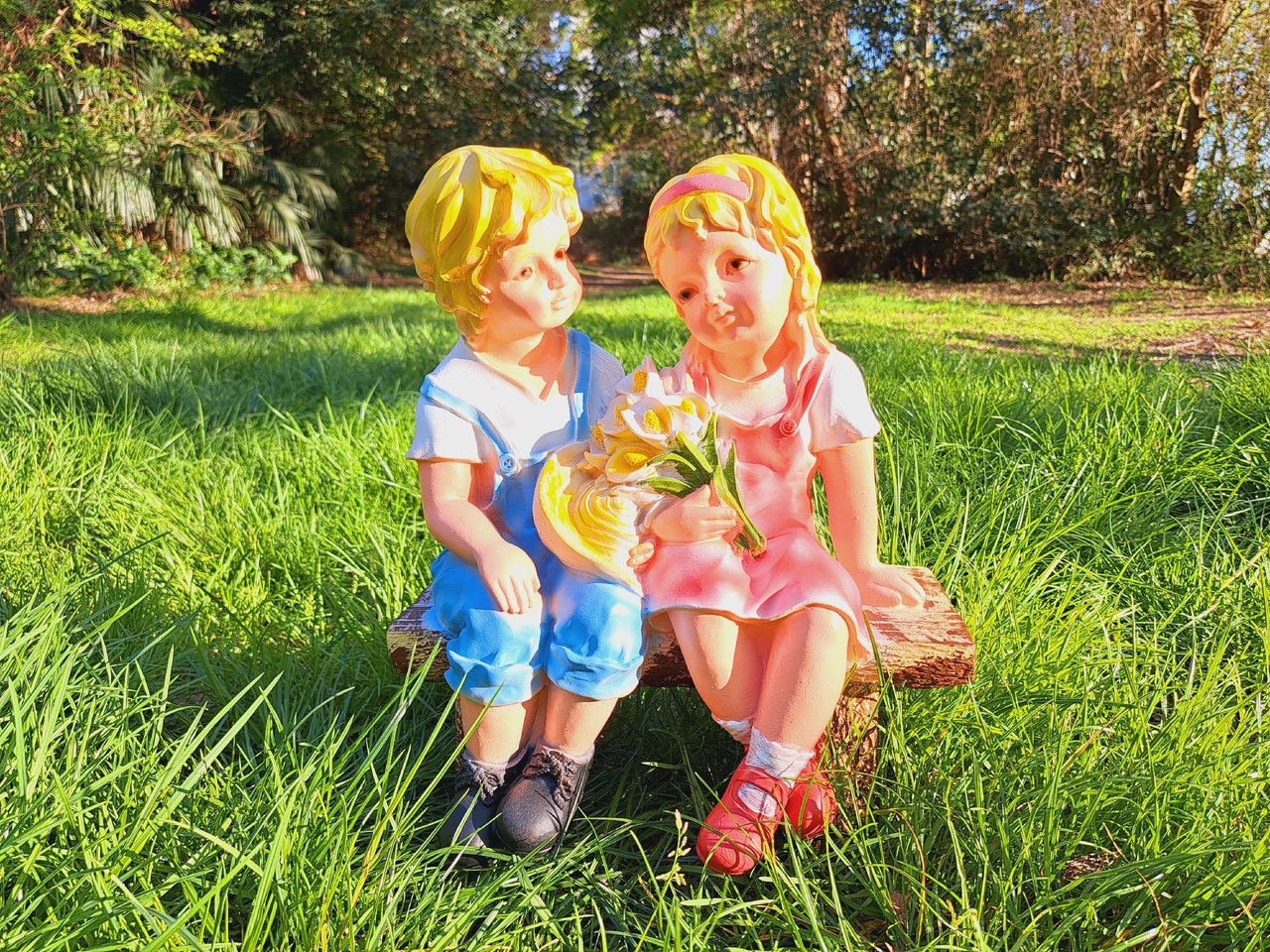 Садовая фигура «Мальчик с девочкой на скамейке», изготовленная из искусственного камня полистоуна, отличный способ разнообразить приусадебный участок и долгие годы будет радовать вас. Мы изготавливаем специальную форму, с помощью которой и отливается уже оригинальная фигура из полистоун для дачи. На последнем этапе садовую фигуру оформляют в определённой цветовой палитре. Роспись осуществляется вручную художником. Краски, которые используются для оформления фигуры и росписи, являются водостойкими и способны защитить изделие