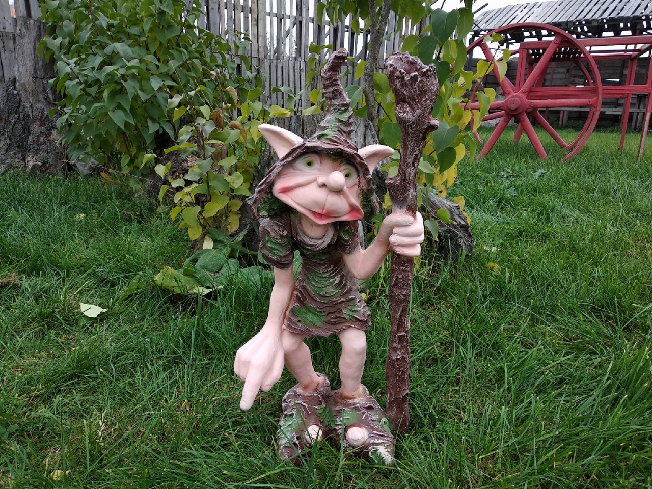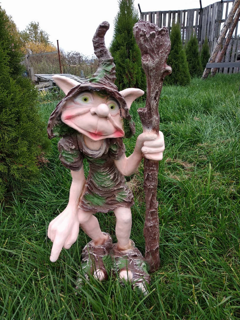 Садовая фигура ТРОЛЛЬ БОЛЬШОЙ С ТРОСТЬЮ 75 см.