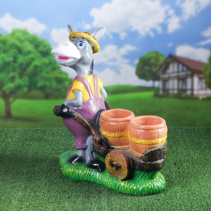 Садовое кашпо для цветов ослик с тележкой, 53х44 см.